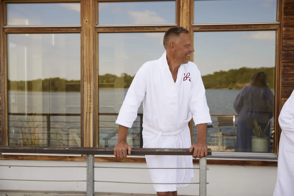 Här finns två bastuavdelningar med omklädningsrum, dusch, bastu (såklart) och WC. Båda bastuarna har fönster så att du kan njuta av den fantastiska utsikten över Åsunden. Från bryggdäcket kan du ta dig ett dopp i sjön